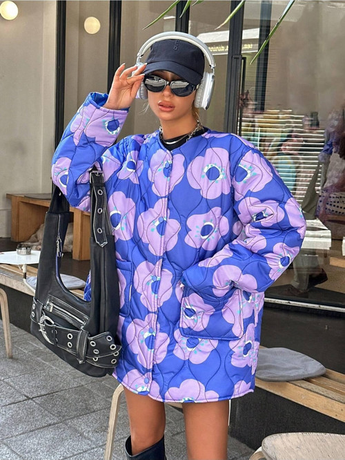 Canlı çiçek deseniyle enerjik bir duruş kazandıran bu oversize kapitone mont, tarz sahibi kadınların gardırobunda fark yaratıyor.