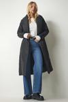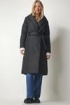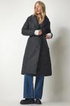 Borcka Tekstil Kadın Siyah Kuşaklı Şal Yaka Kapitone Kaban