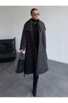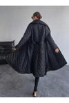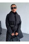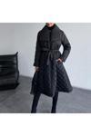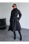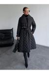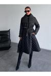 Borcka Tekstil Siyah Renk Kuşaklı Kapitone Kadın Mont