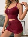 Bordo Dantel İşlemeli Fitilli Askılı Şortlu Pijama Takımı