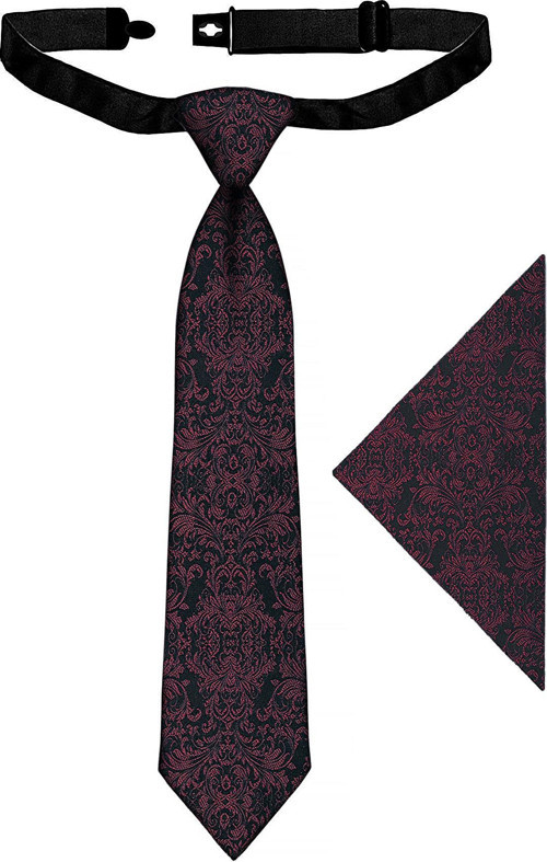 - Çocuklar için özel tasarlanmış bordo jakarlı saten kravat ve mendil seti
