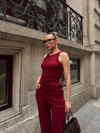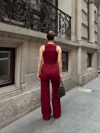 İntive lingerie-innocent&attractive Bordo Renk Atletli Sıfır Yaka Kalın Askılı Boru Paça Pantolonlu Kaşkorse Takım