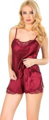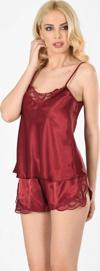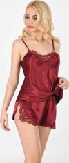 Amazex Store Bordo Saten Babydoll Şortlu Takım - 281