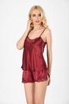 281 Saten Bordo Şort Takım Üstün Kalitede Kumaşlardan üretilmiştir. Özel Paketinde Gönderilmektedir. Kumaş türü : %100 Saten Ürün içeriği : Atlet + Şort S/M - (36-38) L-XL - (40-42) Bedenlere olmaktadır.