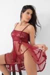 Sistina-835 Bordo Şifon Pileli Dantelli Gecelik