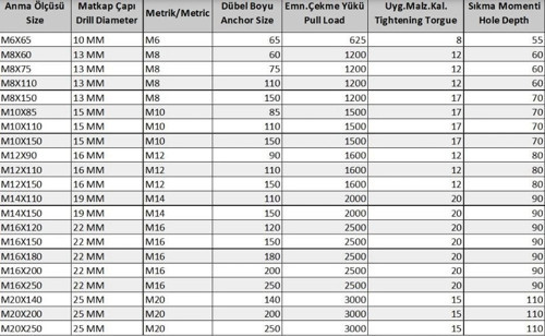Civatalı Borulu Dübel : Beton kalitesi düşük olan yerlerde tercih edilen dübel çeşididir. Üzerindeki ı borudan imal edilmiştir. Civatalı Borulu Dübel, genellikle duvarlara, betonlara veya diğer sert yüzeylere sabitlemek için kullanılan bir tür ankraj dübeldir.