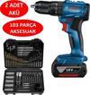Bosch Professional GSB 185-LI 2 x 2.0Ah Çift Akülü Darbeli Matkap + Bosch V-Line Matkap & Vidalama Karışık Aksesuar Seti 103 Parça