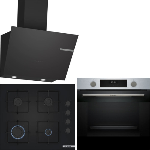 Bosch Inox/ Siyah Ankastre Set HUA717BR0T-POP6C6P30O-DWK66PJ60T