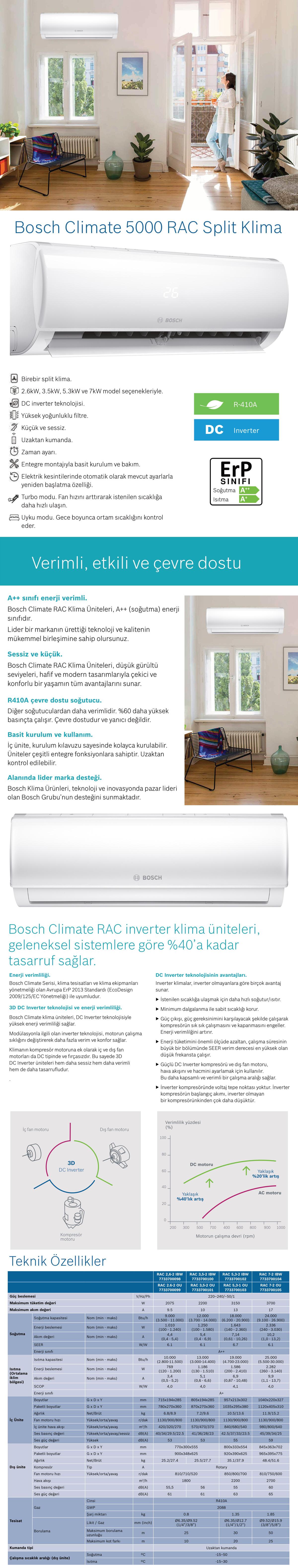 Klima Montajı ve garanti işlemleri ile ilgili bilgiler sayfanın en alt kısmındadır... Bosch (Montaj Dahil) Climate 5000 RAC 18.000 Btu A++ İnverter Klima