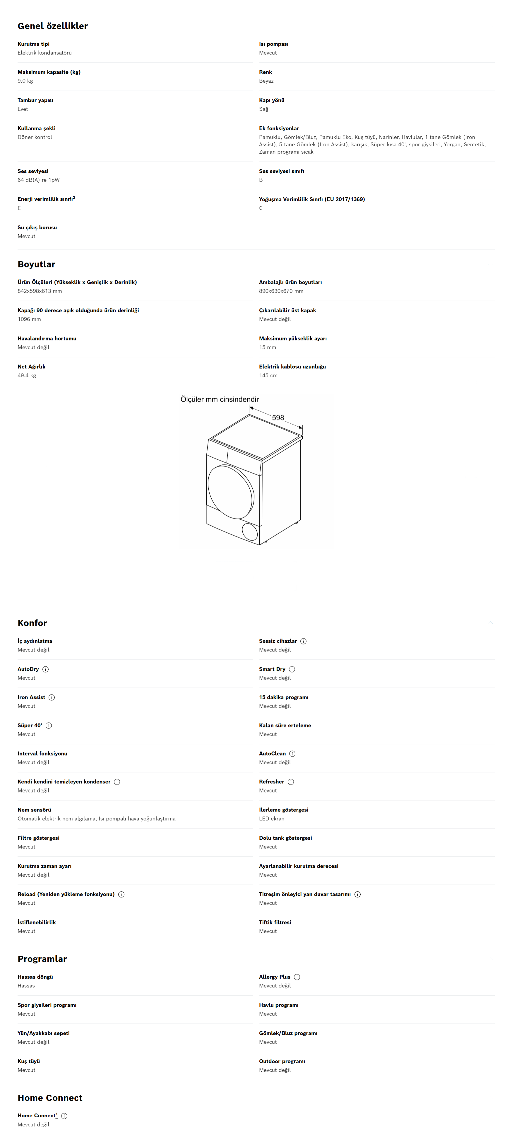 Bosch Wqg241A0Tr 9 Kg Isı Pompalı Kurutma Makinesi