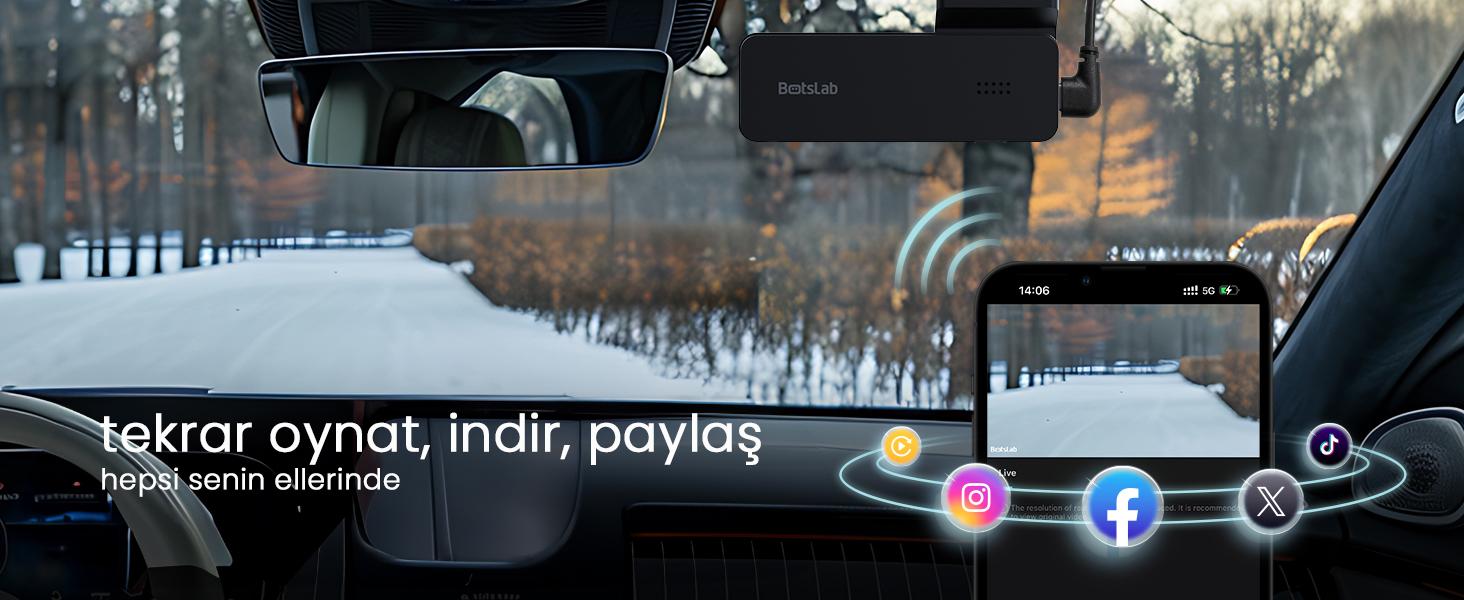 +360 Botslab Hk50 Set / 3k Qhd Wifi 150° Ultra Geniş Açı Gece Görüşlü Akıllı Araç Kamera + Park Kiti