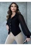 - Zarif tasarımıyla dikkat çeken bu bluz, düğme detaylarıyla klasik bir şıklık sunar.