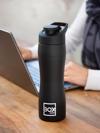 Paslanmaz çelik matara, özel tasarlanmış geniş ağzı ve kilitli kapağı sayesinde sızdırma yapmaz.