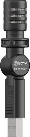 Boya BY-M100UA, usb konnektörüyle bilgisayara bağlanarak çalışabilecek şekilde tasarlanmış çok yönlü minyatür bir mikrofondur. Windows veya mac işletim sistemi bulunan bilgisayarlarda çalışabilir.