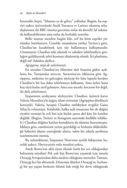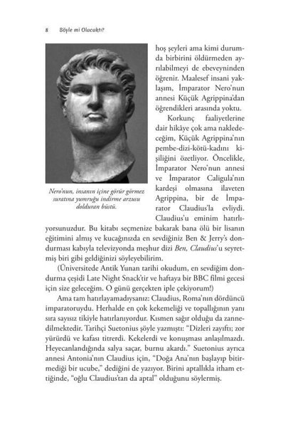 Böyle mi olacaktı?’da Jennifer Wright bizlere, kabul edilebilir rezilliğin sınırlarını aşıp tarihte iz bırakma mertebesine ermiş 13 berbat ayrılık hikayesini sunuyor. Liste ilgi çekici; ayrılık acısından mustarip İmparator ve sadist Nero’dan Rus İmparatoriçesi Anna İvanovna’ya (bir çifti düğün gecelerinde çıplak olarak buzdan saraya kilitlemişliği var), Anne Boleyn’den Lord Byron’a, Norman Mailer’dan Elizabeth Taylor’a uzanıyor. Fena süründürmüş ayrılıkları gün yüzüne çıkarmak için arşivlerin derinlerine dalan Wright öğrendiklerini sohbetimsi, hayli nükteli bir üslupla bizlerle paylaşıyor. Böyle mi Olacaktı? sevmiş, kaybetmiş ve belki de eski sevgilisine gece yarısı fazla kaçırmış halde aptalca mesajlar göndermiş olanlar için. Ne kadar kötü şeyler yapmış olursak olalım, kimsenin VIII. Henry kadar kötü olamayacağını hatırlatmak gibi ulvi bir amacı var.