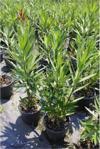 Yaprakları mızrak şeklinde, kısa saplı, aşırı veya üçlü dairesel yapılar dizilmiştir.