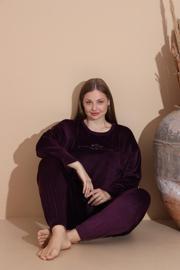 Boyraz Kadın KIŞLIK Fransız Kadife Büyük Beden Bisiklet Yaka Uzun Kol Pijama Takımı 03143 - 1 Adet