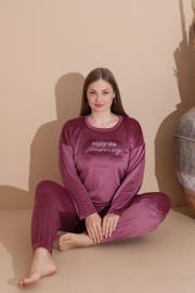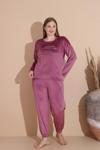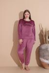 Boyraz Kadın KIŞLIK Fransız Kadife Büyük Beden Bisiklet Yaka Uzun Kol Pijama Takımı 03147 - 1 Adet