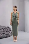 CEMO’nun BOYUNDAN AKSESUARLI DEGAJE YAKA ELBİSE’si, farklı aksesuarlarla kombinlenerek çok yönlü bir kullanım imkanı sunar. Günlük hayatta rahatlıkla tercih edilebileceği gibi, özel etkinliklerde de şıklığı ile göz doldurur.