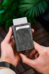 Vanilla Collection Brahma Model Unisex Vegan Deri Mekanizmalı Vegan Deri RFID Cüzdan Kartlık Portföy Crazy Gri