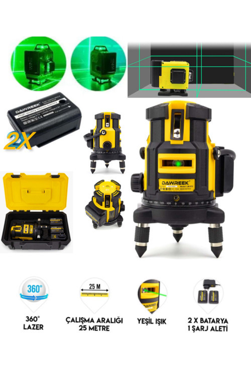 Branzeg Şarjlı Çift Akülü Profesyonel 4 Köşe 4×360 5 Yönlü Satır Yeşil Çizgi Lazer Çizgi Hizalama BRANZEG Öne Çıkan Özellikler: 360° Döner Taban: Tüm yönlerde hassas hizalama.