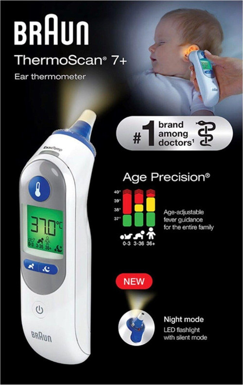 Braun ThermoScan 7 yaşa göre ayarlanabilen ateş rehberi ile tüm ailenin kullanımına uygun infrared kulaktan ateş ölçer.