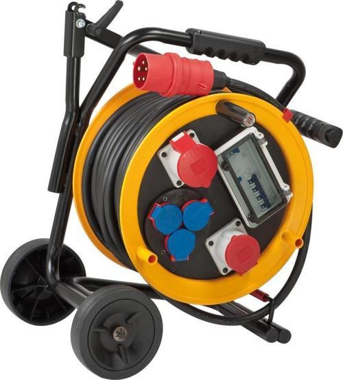 - 30 m RN kablolu (H07RN-F 5G4.0) özellikle sağlam çelik boru çerçeveli mobil kablo tamburu, sürekli dış mekan kullanımı için idealdir, IP 44 Lisanslıdır