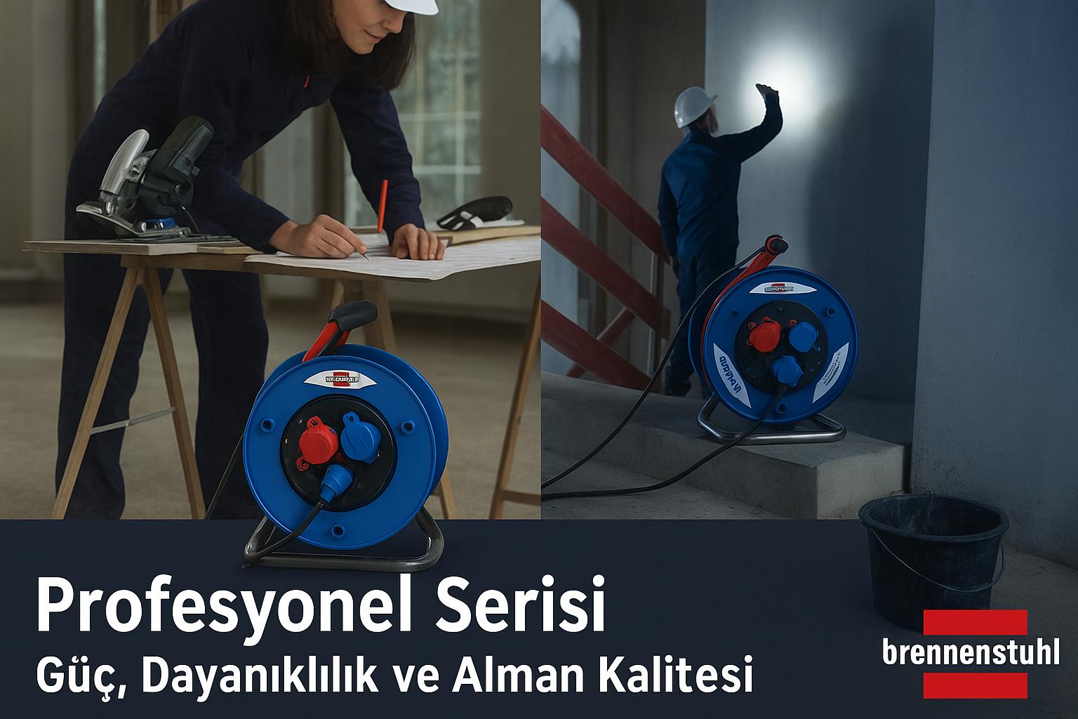 BRENNENSTL Brennenstuhl Profesyonel Serisi 40 Metre Kablolu 5 Soketli Isınma Sigortalı Cablepilot Özellikli Dış Mekan Makaralı Kabl