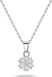 Bu özel kolye, incelikle işlenmiş bir kar tanesi tasarımı ve parıldayan pırlanta detaylarıyla dikkat çekiyor..