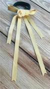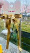 • Malzeme: Altın sarı fiyonk, ince saten kurdele, krem çiçek, siyah lastik toka