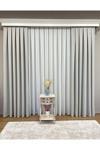 Açık Gri Renk 1/3 Sık Pile Keten Görünümlü Blackout Karartma Fon Perde