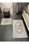 My Sweet Home Yumuşak Dokulu, Kaydırmaz Taban Gri 2’Li Oval Paspas Seti – Lüks Banyo Konforu - Image 1