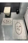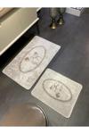 My Sweet Home Yumuşak Dokulu, Kaydırmaz Taban Gri 2’Li Oval Paspas Seti – Lüks Banyo Konforu