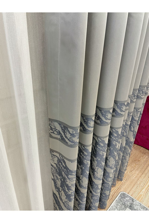 Brillant Gri Renk Bantlı Desen 1/3 Sık Pile Jakar Fon Perde