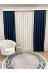 Jakar Zemin Kendinden Desenli 1/2,5 Pile Fon Perde - Lacivert