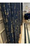 Jakar Zemin Varaklı Desen 1/3 Sık Pile Fon Perde - Lacivert - Altın Varaklı