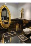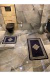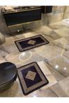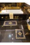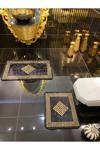 Brillant Losarina 2'Li Lateks Kaymaz Taban Su Geçirmez Banyo Paspas Takımı (60X100 - 60X50) Siyah/Altın