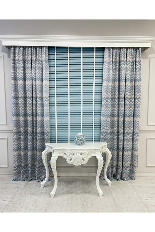 Mavi Renk Polywood Ahşap Görünümlü Jaluzi Perde 50 Mm Ofis Modern Ve Tüm Mekanlar Için