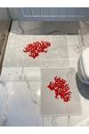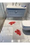 Mercan 2'Li Lateks Taban Banyo Paspas Takımı (60X100 - 60X50) Gri-Kırmızı