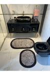 Brillant Minares Model Dama Desen 2'Li Lateks Taban Banyo Paspas Takımı (60X100 - 60X50) Siyah-Kahverengi