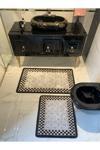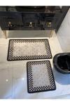 Brillant Bordürlü Desenli 2'Li Kaymaz Taban Banyo Paspas Takımı (60X100 - 60X50) Gri
