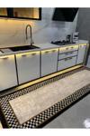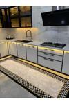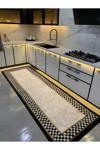 Lateks taban yapısı sayesinde mutfak zemininde güvenli bir kullanım sunar ve kayma riskini azaltır Polyester materyal kullanımı, halının uzun ömürlü ve dayanıklı olmasını sağlar Geometrik deseniyle modern mutfak dekorasyonlarına şık bir dokunuş katar Orta hav yüksekliği (6 12 mm), konforlu bir yürüyüş deneyimi sunarken, temizliği kolaylaştırır Dikdörtgen şekli, mutfak alanınıza uyum sağlayacak şekilde tasarlanmıştır Saçaksız (overlok) kenar tasarımı ile modern ve temiz bir görünüm elde edilir Modern tema ve stil anlayışına uygun olarak tasarlanmıştır çağdaş mutfakların vazgeçilmezi Kaymaz taban özelliği ile mutfakta güvenliğinizi artırır hareket halindeyken ekstra destek sağlar Dijital baskı teknolojisi sayesinde canlı ve net desenler, uzun süre solma yapmadan ilk günkü gibi kalır