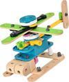 Bu oyuncak yapım seti 120 oyun bileşeni, tam işlevli pille çalışan bir motor ve kullanımı kolay aletlerle birlikte gelir.