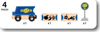 İşaretli teslimat noktasında durun ve mavi oyuncak kamyonun arkasından ahşap ürünleri indirin.