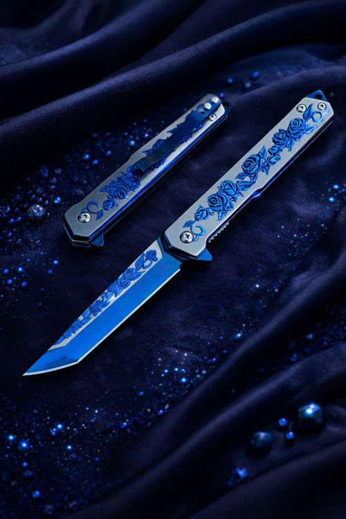 Doğada estetik ve gücü bir araya getiren Browning Mavi Gül Serisi, hem koleksiyon değeri taşıyan tasarımı hem de üstün kesim performansıyla dikkat çekiyor. Titanyum kaplamalı gövdesi üzerinde yer alan özel mavi gül işlemeleri, bu çakıyı sadece bir araç değil, bir sanat eseri haline getiriyor.