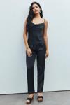 Brûleur Siyah Degaje Yaka Askılı Uzun Saten Pijama Takımı
