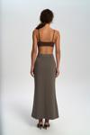 Patlı fermuarlı, gizli düğmeli, kalem etek formunda. Yüksek bel, maxi poliviskon etek.