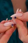 - Mor renkteki ametist taşları, klasik gümüş rengiyle mükemmel uyum sağlayarak sofistike bir stil oluşturur.