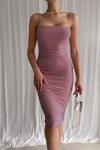 Straplez yaka tipi ile omuzları zarifçe sergilerken, askılı kol tasarımı rahat bir kullanım sunar.