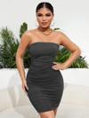 Bu şık ve zarif kadın astarlı straplez büzgülü jarse mini abiye elbise, özel günlerinizde ve davetlerde sizi göz alıcı kılacak..